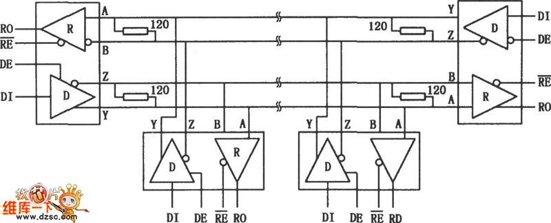 The MAX489/491 is designed as one kind of low power consumption RF transceiver that can be used in the RS-485 and RS-422 standard communications, it has the short-circuit current limiting function. The driver part's output port is in the high impedance state when it gets into the hot standby state, so it can prevent the overload of load; the receiver part's input port has the safety function to prevent the opening circuit, and it can undertake full-duplex communication. The MAX489/491 uses the conversion rate driver to minimize the electromagnetic interference, and it also has the inhibiting effect to the reflection which is caused by the not appropriate port-connection of the cables, so there is no error when it is transmitting the data in the high speed of 250Kb/s, the driver's highest changing rate can reach 2.5 Mb/s, so it can be used in the industrial automatic control data transmission application.