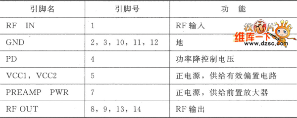 RF2103P is thepower linear amplifier IC, which uses advanced GaAs heterojunction bipolar transistor (HBT), and it is designed for UHF frequency wireless transmit final linear RF amplifier, and its working frequency is 450~1000MHz. RF2103P also can be used as driver amplifier to applyin higher power situation, and the device includes power supply wire, bypass capacitor and matchingnetwork, and itcan generate 750mW (CW) output power. RF2103 can besupplied by 3 batteries, and the maximum CW is 175mW when output is 3.6V, and the device's total gain is 31dB. RF2103P can be used for digital communication system, spread spectrum communication system as high power linear driver. RF2103P pin array is shown in the picture.