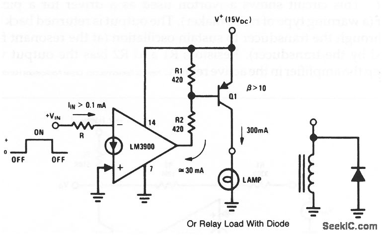 http://www.seekic.com/circuit_diagram/Amplifier_Circuit/Norton_lamp_relay_driver_300_mA_loads.html