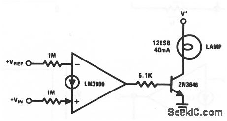 This circuit uses one section of an LM3900 and a 2N3646 to form a noninverting power comparator that is capable of driving a 12-V 40-Ma panel lamp. National Semiconductor, Linear Applications Handbook, 1991 p 243.