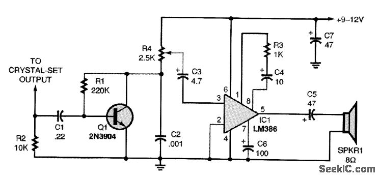 http://www.seekic.com/circuit_diagram/Amplifier_Circuit/ORYSTAL_RADIO_AMPLIFIER.html