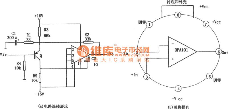 The gain bandwidth of some integrated amplifier is small (about l ~ 2 MHz), the input noise is high and the conversion rate is low pressure (about 0.5 V/u s). The reason why the gain bandwidth is small is that the operational amplifier internal input class level shift from the transistor phase shift. Conversion rate is low, because the input stage emitter current is too small. Figure (a) shows the low noise amplifier broadband circuit composed of the application ordinary op-amp integrated chips OPA101. The circuit can increase the convert rate to 30 times, and its gain bandwidth can be close to l00MHz.