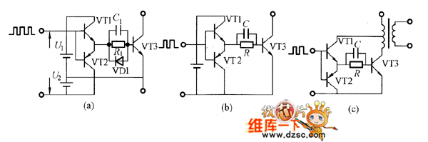 The most effective method to add reverse bias voltage is using the circuit in picture (a). In this circuit when the switch transistor VT3 is disconnected, the VT2 would be conducted and add the reverse voltage to the switch transistor VT3's base electrode. Even the pulse is narrow it could add enough reverse bias voltage. But it needs the reverse bias power U2. The VT2's power is using the circuit in picture (c). It could get the voltage U2 from the transformer tapping.