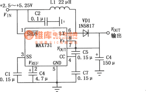 http://www.seekic.com/circuit_diagram/Amplifier_Circuit/Other_circuit/MAX731_switch_control_DC_DC_boosting_convertor.html