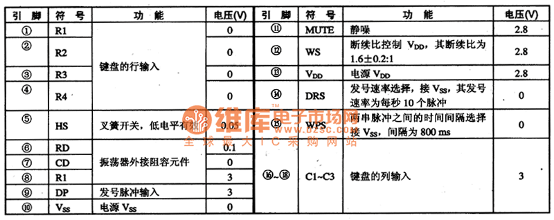 Second,Pins Functions and DataS25610 adopts feet 18 DIP generating circuit and its pins functions and data are shown as table 1.