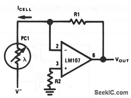 R1 depends on cell sensitivity, and should be chosen for eithermaxlmum dynamic range, Or for a desired scale factor. R2 is used tominimize outputoffset. and can be omitted in many applications.