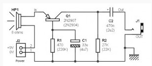 This Microphone Preamp circuit shows that it is possible to use the speaker as a microphone, and is specifically designed to beginners because of its simplicity. Power consumption, of about 2mA, allowing the circuit is operated a few hours on a single 9V battery. However, it does not prevent you to use a stable power supply, or solar cells …