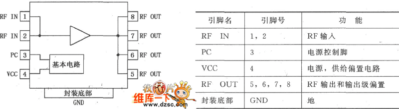 RF2126 is high-power, high-efficiency linear amplifier IC. It adopts advanced GaAs hetero-junction bipolar transistor (HBT) technology. It is designed for 2.5GHz ISM frequency range final linear RF amplifier, such as WLAN and POS terminal, it also can beused for digital PCS phone to send out final linear enlarging. Its working frequency is 1800~2500MHz.RF2126 has matching network, and RF2126 itself includes power supply wire and bypass capacitor. Output power’s typical value is 1W. RF2126 can beused for 2.5Hz ISM frequency range, digital communication system, PCS communications system, commercial and consumer system, portable battery power equipment and so on. RF2126’s pin array and functionare shown in the following diagram.