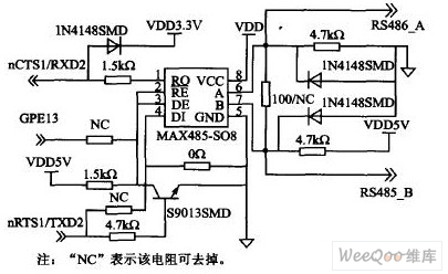 RS232 to RS485 conversion interface circuit diagram designed by MAX485 chip is shown as above.