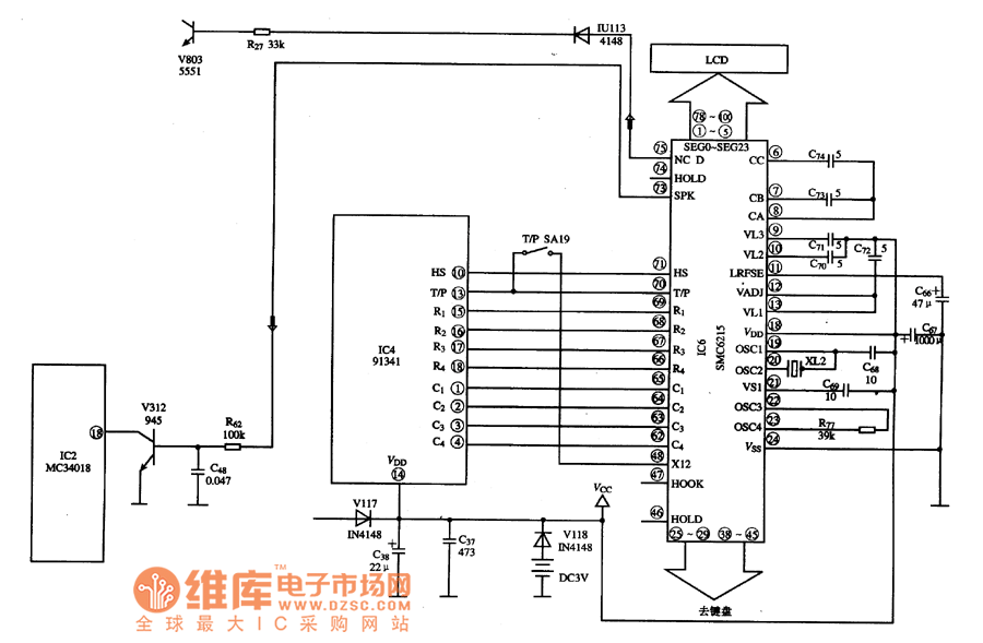 SMC6215 is a communication single door microcomputer integrated circuit, which is widely used in Panasonic intelligent multi-function phones.1.function featuresSMC6215 contains clock oscillating circuit, key pulse generating circuit, key order encoding circuit, off-hand control circuit, music retaining circuit, dual audio/pulse dialing shifting control circuit, storage circuit, starting control circuit, steady power supply circuit, dialing control circuit, LED display signal decoding and drive circuit, and other additional function circuits.