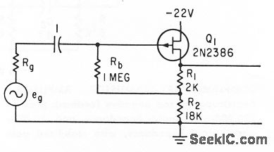 Bandwidth is 10 cps to 10 kc, d-c input impedance is 10 meg, and input impedance at 10 kc is above 1 meg for input signals from 1 my to 10 my.-T. R. Bignell, How to Get Maximum Input Impedance with Field-Effect Transistors, Electronics, 36;10, p 44-46.