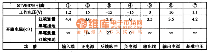 STV9379 is a special field scanning output integrated circuit and it is applied to Sony large-screen color TV widely as well as cassette mechanism large-screen color TV made in China of Sony cassette mechanism.1.function characteristicsSTV9306 integrated circuit includes field scanning output driving circuit,field scanning output circuit,voltage reference providing circuit,and other miscellaneous function circuit.2.function and data of pinsSTV9306 integrated circuit uses positive and negative power supply and adopts 7 pins single inline package and the function and data of pins of the integrated circuit are shown as chart 1.
