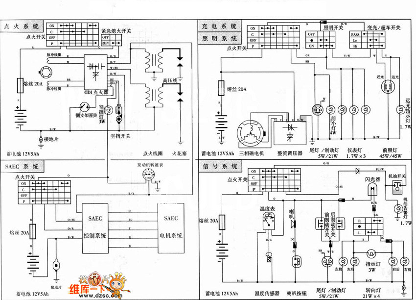 The Suzuki RGV250W motorcycle decomposition circuit is as shown: