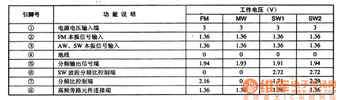 TD7101F is a preset frequency splitter in the digital modulation system of low-voltage power supply, whose maximum working power is 250MHZ.1. Function features TD7101F includes the frequency splitting circuit, the frequency splitting preset circuit and other additional function circuit. As the frequency of FM signal is 108MHz, and it is added with a middle frequency of 10.8MHz, so the maximum frequency of FM is 118.7MHz, usually, such a high frequency can not work in CMOS/PMOS. The function of TD7101F is to split the frequency, so that it will be lower than the working frequency of the integrated circuit.