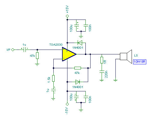 http://www.seekic.com/circuit_diagram/Amplifier_Circuit/TDA2030_10W_Audio_Amplifier_Circuit.html