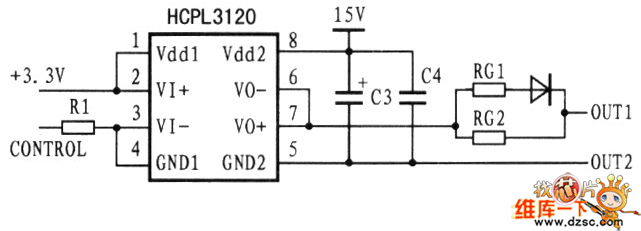 The pwm signal generated by dsp control circuit first crosses the drive circuit, and then controls the ON/OFF state of the igbt switch pipe. The writer chooses HP hcpl3120 specialized igbt drive circuit, see as the figure. The output and input of the drive circuit are isolated to each other, the drive circuit also has the function of LEV switching, it can convert the dsp +5 control voltage in the +15V igbt drive circuit, the drive circuit is equipped with the MORNSUN b0515 isolating power supply module.