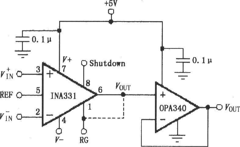 Published:2014/5/21 20:59:00 Author:lynne | Keyword: The OPA340 composed of INA331/332 output buffer circuit, INA331, OPA340 | From:SeekIC