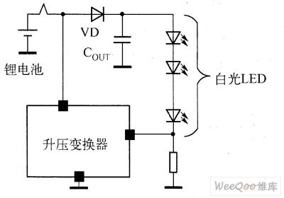 Figure 1 the application circuit of the inductance boost transformer drive standard white light LED