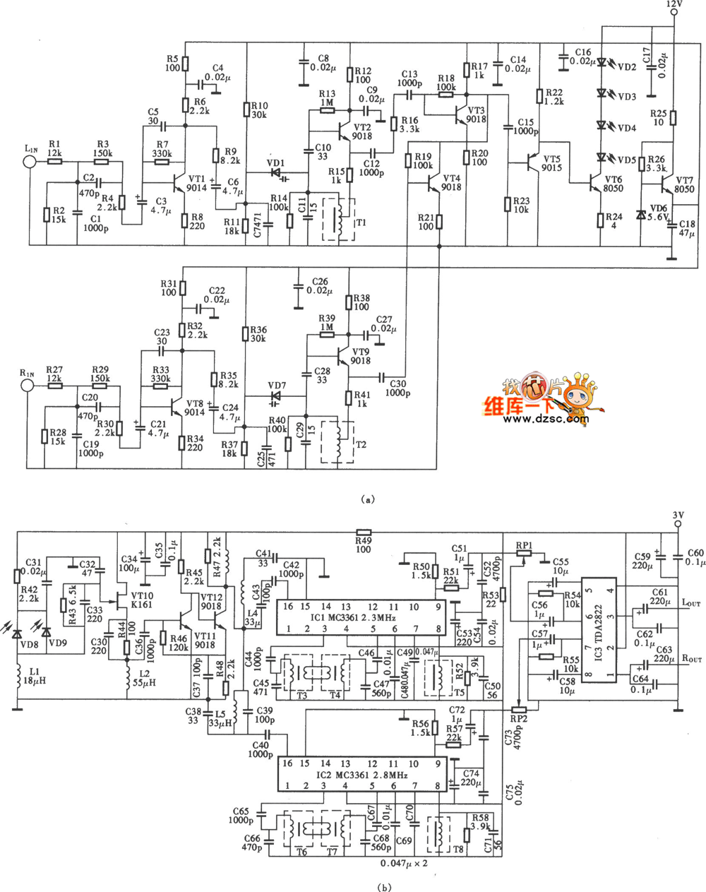 http://www.seekic.com/circuit_diagram/Amplifier_Circuit/The_high_frequency_infrared_harmonic_stereo_headphone_circuit.html