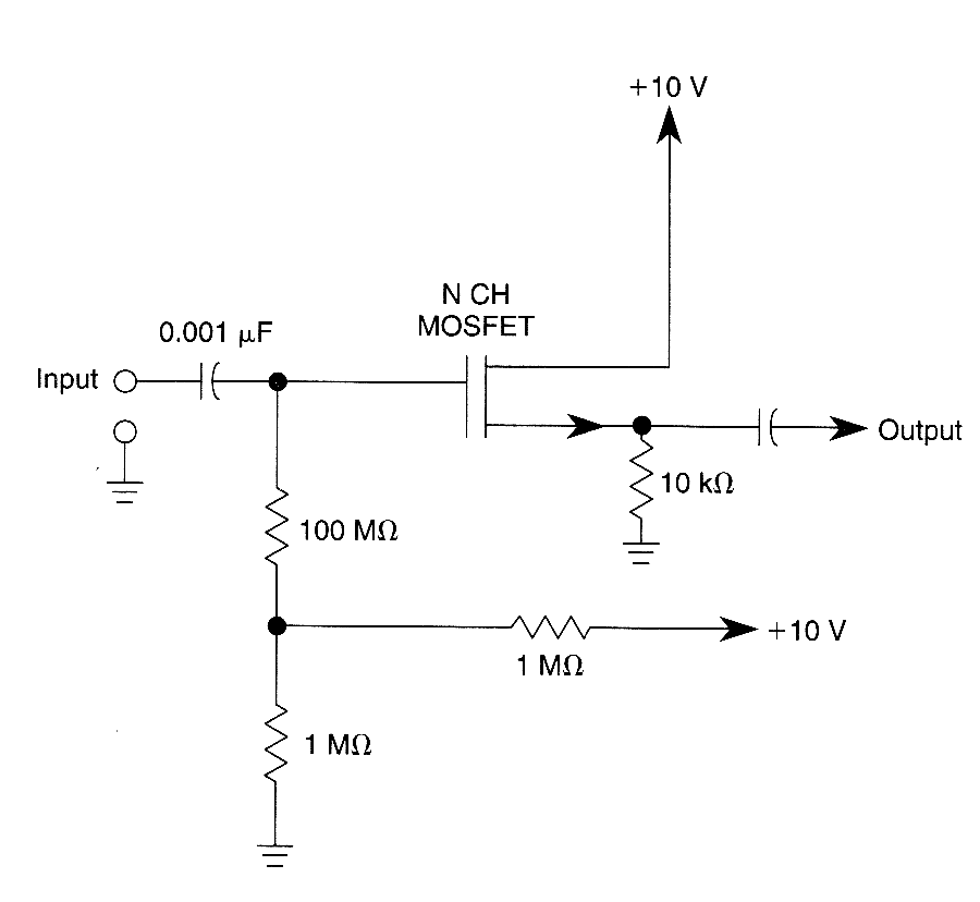 Biasing methods for an N-channel MOSFET to form a unity-gain noninverting amplifier or source-follower.