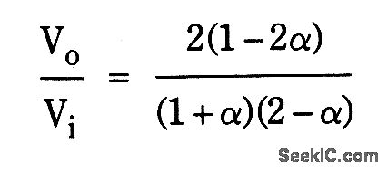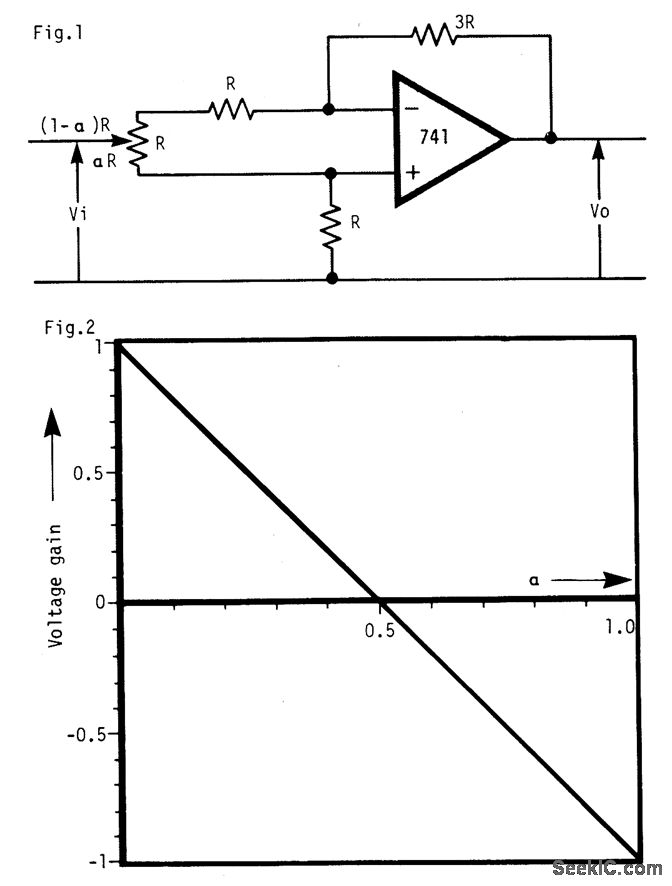 The gain of the amplifier is smoothly controllable between the limits of +1 to -1.It is adjustable over this range using a single potentiometer. The voltage gain of the arrangement is given by: