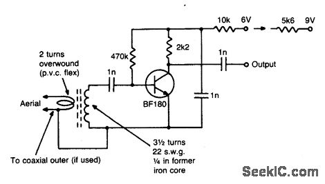 This simple circuit gives 15 dB gain and can be mounted on 1 in 2PCB. Coil data is given for 85 to 95 MHz. For other frequencies modify coil as required.