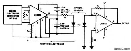 Art LM10 is used as a meter amplifier. Accuracy can be maintained over a 15℃ to 55℃ range for a full-scale sensitivity of 10 mV and 100 nA. The offset voltage error is nulled with R5, and the bias current can be balanced out with R4. The zeroing circuits operate from the reference output and are essentially unaffected by changes in battery voltage, so frequent adjustments should not be neces-sary. Total current drain is under 0.5 mA, giving an approximate life of 3 to 6 months with an AA cell and over a year with a D cell. With these lifetimes, an ON/OFF switch might be unnecessary. A test switch that converts to a battery-test mode might be of greater value. (View)