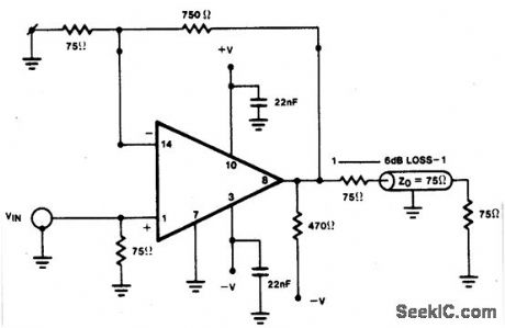 Amplifier has gain-bandwidth priduct of 20 MHz with slew rate of 0.3V/μ sec. (View)