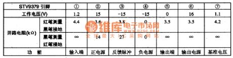 STV9379 is a special field scanning output integrated circuit and it is applied to Sony large-screen color TV widely as well as cassette mechanism large-screen color TV made in China of Sony cassette mechanism.1.function characteristicsSTV9306 integrated circuit includes field scanning output driving circuit,field scanning output circuit,voltage reference providing circuit,and other miscellaneous function circuit.2.function and data of pinsSTV9306 integrated circuit uses positive and negative power supply and adopts 7 pins single inline package and the function and data of pins of the integrated circuit are shown as chart 1.