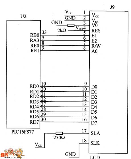 Published:2014/1/2 20:09:00 Author:lynne | Keyword: LCD and the interface of PIC16F877 circuit, PIC16F877