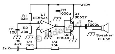 Figure 1 shows the schematic - this is almost the same as in the application note (redrawn), and with added RF protection at the input. Note that the speaker must return to the central 'star' earth (ground) point. If connected to the amplifier's earth bus, you will get oscillation and/or poor distortion performance.
