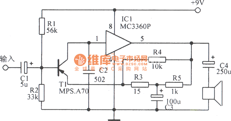 Published:2014/2/7 19:41:00 Author: | Keyword: Composed of MC3360P audio power amplifier circuit diagram, | From:SeekIC