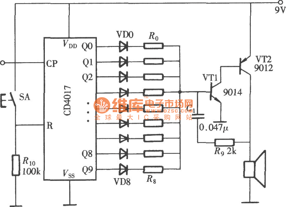 As shown in the figure is an electronic music box circuit composed of CD4017