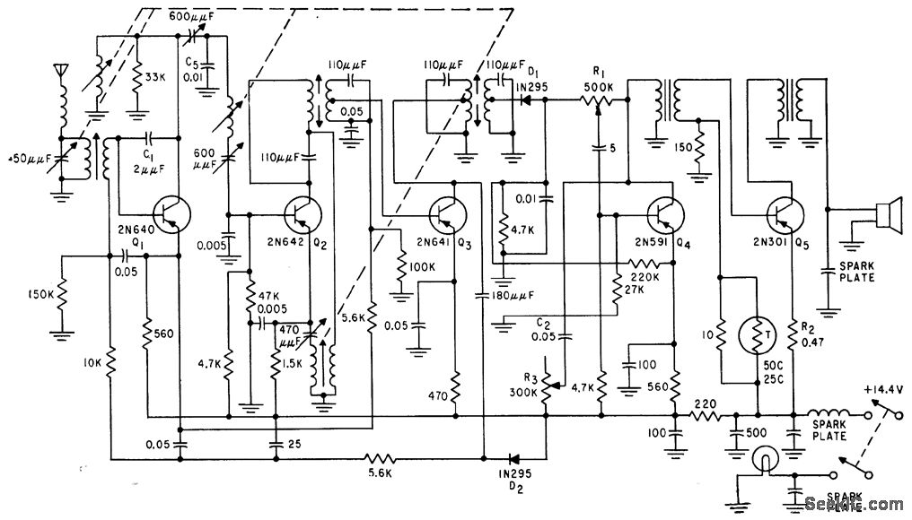 http://www.seekic.com/circuit_diagram/Audio_Circuit/FIVE_TRANSISTOR_AUTO_RADIO.html