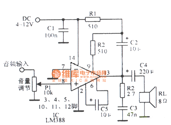 Published:2014/1/21 19:49:00 Author: | Keyword: Gain of 200 and load ground LM388 circuit diagram, | From:SeekIC
