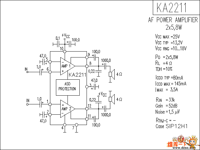 http://www.seekic.com/circuit_diagram/Audio_Circuit/KA2211_audio_IC_circuit.html