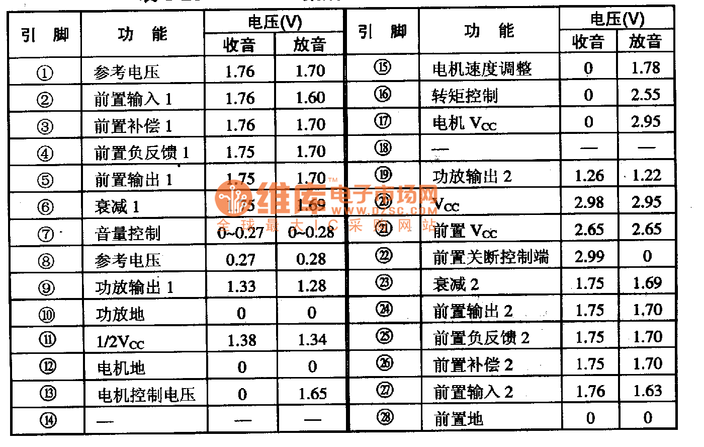 LAC673 integrated circuit contains double preamplifier, double power amplifier, DC electronic volume control circuit, DC motor steady speed circuit. The internal circuit block diagram of this integrated block is shown in the figure1. This IC adopts dual flat type package, the pin function and data of this integrated circuit is shown in the table1.
