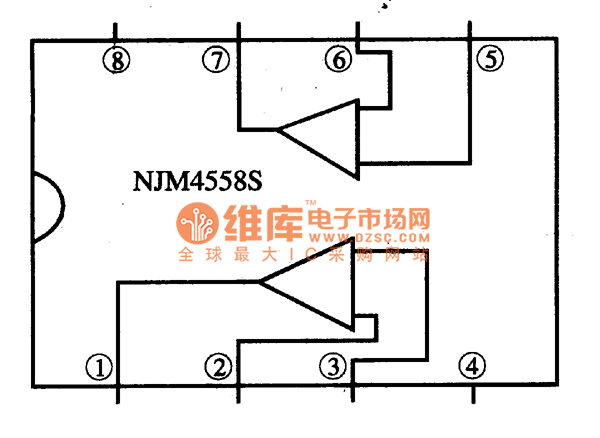 NJM4558S is a dual computing amplifier integrated circuit produced by JRC Corp., Japan, which is widely used in all kinds of areas, such as CD players, VCD players, DVD players, stereo equipment, electric auto control equipment, instruments, meters, all kinds of household appliances, computers and their screens, car power appliances and car stereos, cooling electric appliances, office electric appliances, etc.NJM4558S is in 8-pin dual line package, whose internal circuit is shown in the figure, and its pin functions and data are listed in the table.