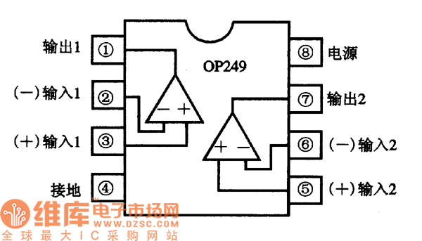 OP249 is a dual computing amplifier integrated circuit, which belongs to general type IC, it is widely used in all kinds of electric apparatus, such as the stereo equipment, computer system, medical device, instruments and household appliance, etc.1.the internal circuit and featuresOP249 contains two same-function computeing amplifiers, which can form the noninverting and inverting amplifier of different terms, it can also be used as the voltage comparator. Its internal circuit is in the figure.