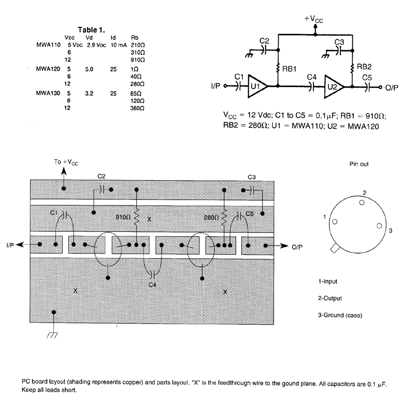 Motorola MWA 110,120,Or 130 are wideband amplifier ICs. This wideband preamp circuit can be used in many applications Keep the leads short when constructing the circuitry.