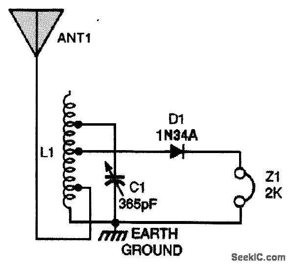 A starting setup for this circuit is as follows:Connect the antenna to the second tap up from the bottom of the coil (that's the end of the coil that's connected to ground). The diode should connect to about the fourth tap up from the bottom, and C1 should be attached to the seventh tap or so up from the bottom. Those tap positions might not be the best starting point for your antenna/ground arrangerttent. That doesn't matter, however, because to obtain the best results with the receiver at your location, you should experiment with all variables anyway.