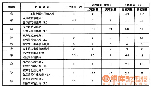 2. Pin functions and data TA7230 is in 10-pin in-line package, whose pin functions and data are listed in table1.
