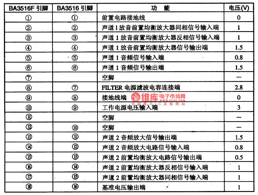 BA3516、BA3516 is an integrated circuit of single door stereo radios produced by Toyo Power Tool Corp.,Japan, which is commonly used in stereos, especially in walk-man, apart from Aiwa, sometimes, Sony, Phillips and local walk-man also use it.1.the internal circuit of BA3516 and BA3516F BA3516 is in two packages, of which BA3516 is in 16-lead dual in-line plastic package, while BA3516F is in 18-lead dual in-line plastic package. The two internal circuits are almost the same.