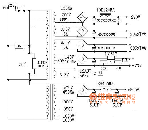 Published:2011/7/18 4:50:00 Author:Felicity | Keyword: 12AU7 +5687 Push, 845 Push-pull, Amplifier Circuit | From:SeekIC