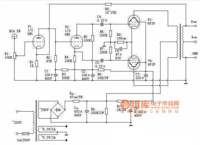 Published:2011/7/17 23:43:00 Author:Felicity | Keyword: 6P3P, Push-pull, Tube Amp Circuit | From:SeekIC