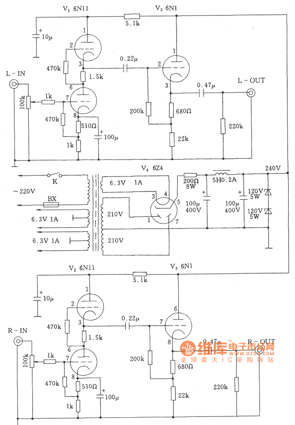 http://www.seekic.com/circuit_diagram/Audio_Circuit/Tube_Amplifier/Two_channel_Amplifier_Circuit.html