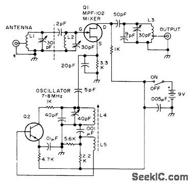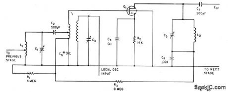 Balanced oscillator input prevents interaction between tuned circuits. Transconductance of mixer is direcdy proportional to oscillator voltage, permitting use for agc. -G. G. Luettgenau and S. H. Barnes, Designing With Low-Noise MOS FETs: A Little Different But No Harder,Electronics,37:31,p53-58 (View)