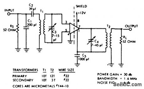30 MHz RF amplifier with limiting using the EGC703A 10 (courtesy of GTE Sylvania Incorporated). (View)