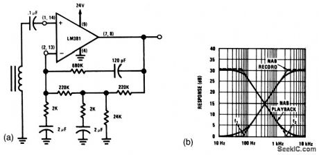 This circuit requires only 0.1 second for turn-on, Compare to Fig. 1-29.When recording, the frequency response is the complement of the NAB playback equalization, making the composite record and playback response flat (Fig.1 -30B). (View)