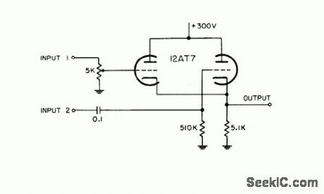 Is good adder for coincident inputs. Proves unity gain. Generally preferred to pentode common-plate mixers.-NBS, Handbook Preferred Circuits Navy Aeronautical Electronic Equipment, Vol. 1, Electron Tube Circuits, 1963, p N4-8. (View)